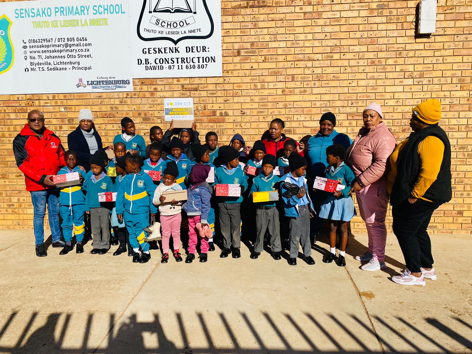 Donation of shoes and socks to kids from Methodist Church in Boikhutso Location